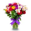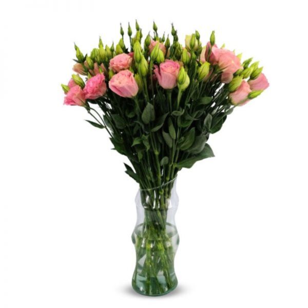 Ilumina su mirada con este espectacular florero de 15 maravillosos lisianthus. Emiten un mensaje de halagadora elegancia para regalar en cualquier ocasión. Este impresionante ramo va en un delicado florero transparente bellamente adornado con cinta decorativa de color rosa o morado.