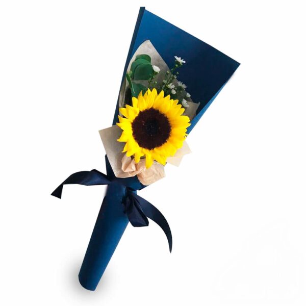 Sorpréndela con este espectacular mini ramo con un girasol. Este marvilloso cono va acompañado por un tarjeta para dedicar.