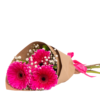 Espectacular ramo compuesto por 10 rosas rosadas y 10 alstromerias blancas envueltas en papel floral y sujetado con cinta fucsia .
